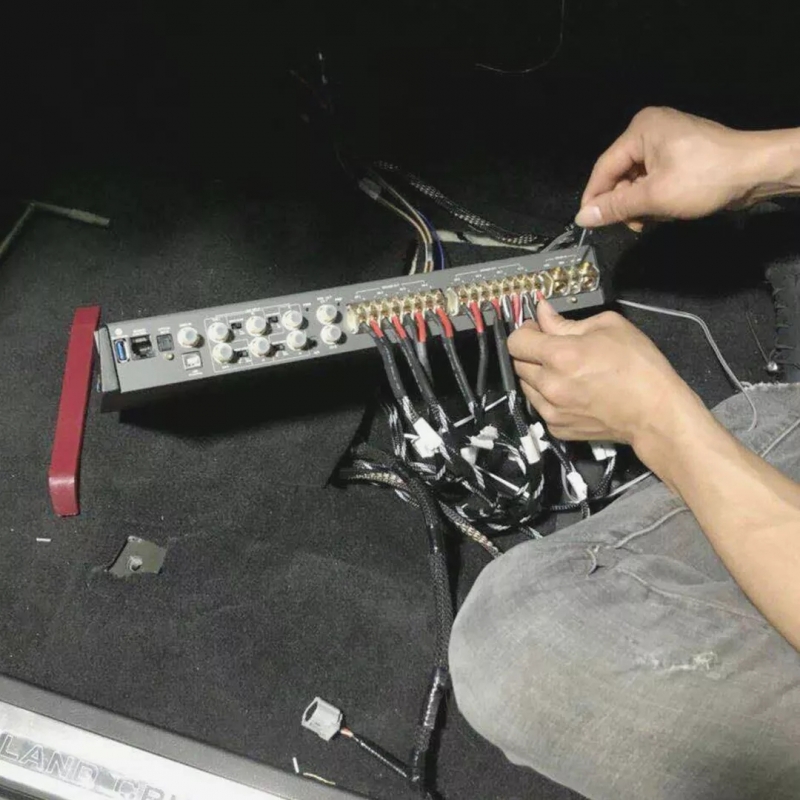 為了保證聲場喇叭的功率輸出穩(wěn)定,改裝技師為汽車音響系統(tǒng)添加了藍(lán)寶DSP MP 68A,同時它還自帶DSP數(shù)字音頻處理。安裝好之后,改裝師傅開始調(diào)音,并全方面檢查車內(nèi)的安裝情況。經(jīng)過改裝師傅的精心調(diào)試,音質(zhì)有了很大的提升。