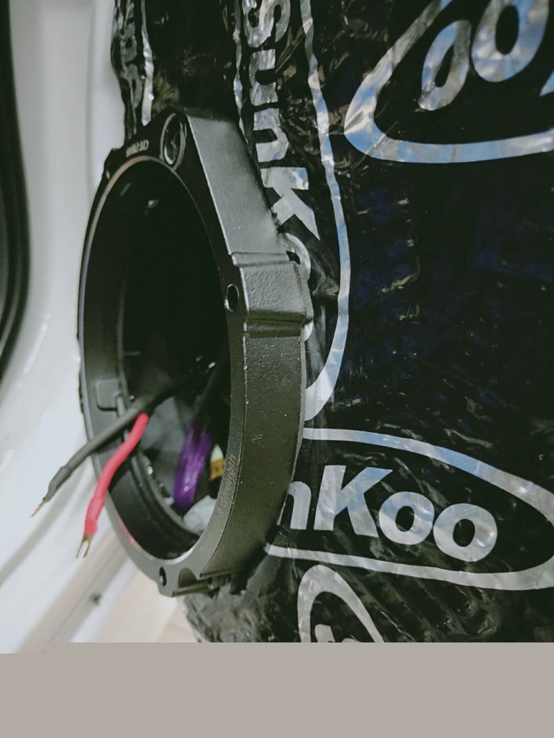 首先,在車(chē)門(mén)隔板上安裝隔音,安裝隔音之后再安裝專(zhuān)車(chē)專(zhuān)用的喇叭墊圈。