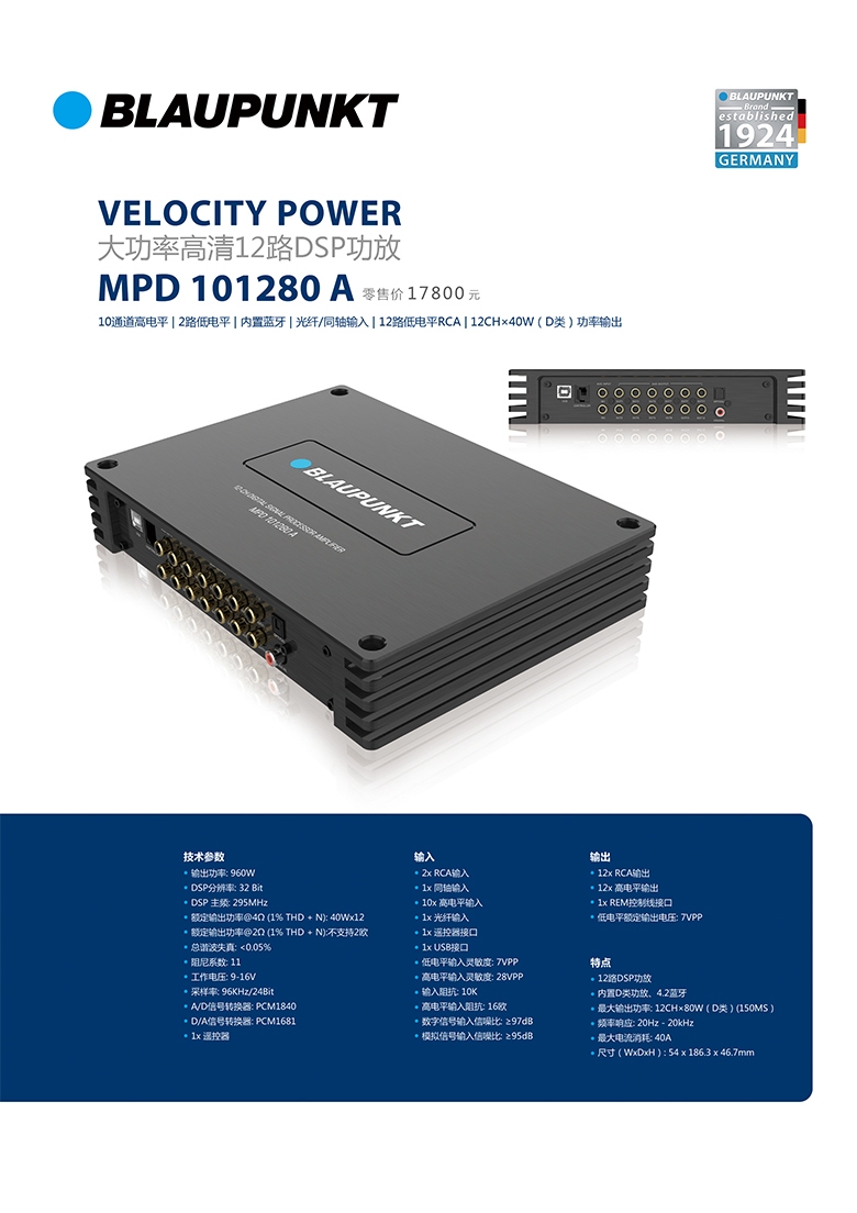德國(guó)(藍(lán)寶BLAUPUNKT)大功率高清12路DSP功放 MPD 101280 A