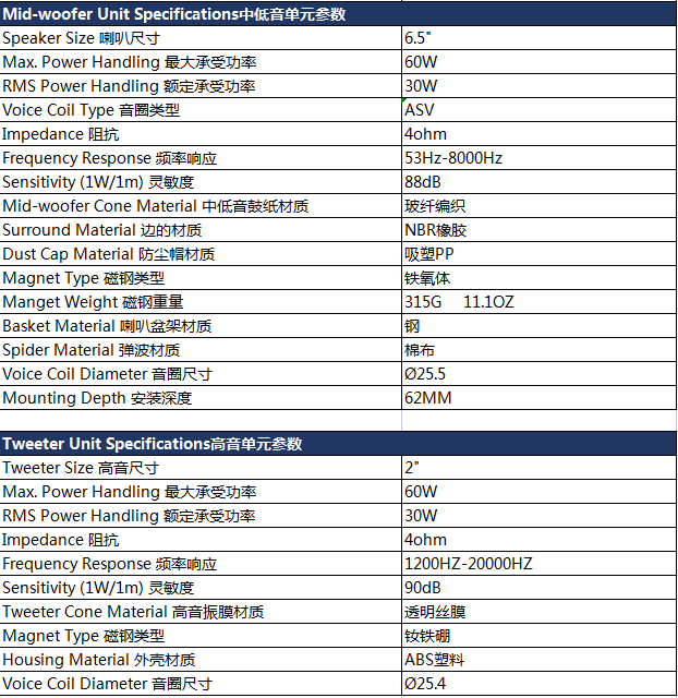 MBQ DW-ME-1651 6.5寸兩分頻套裝揚(yáng)聲器